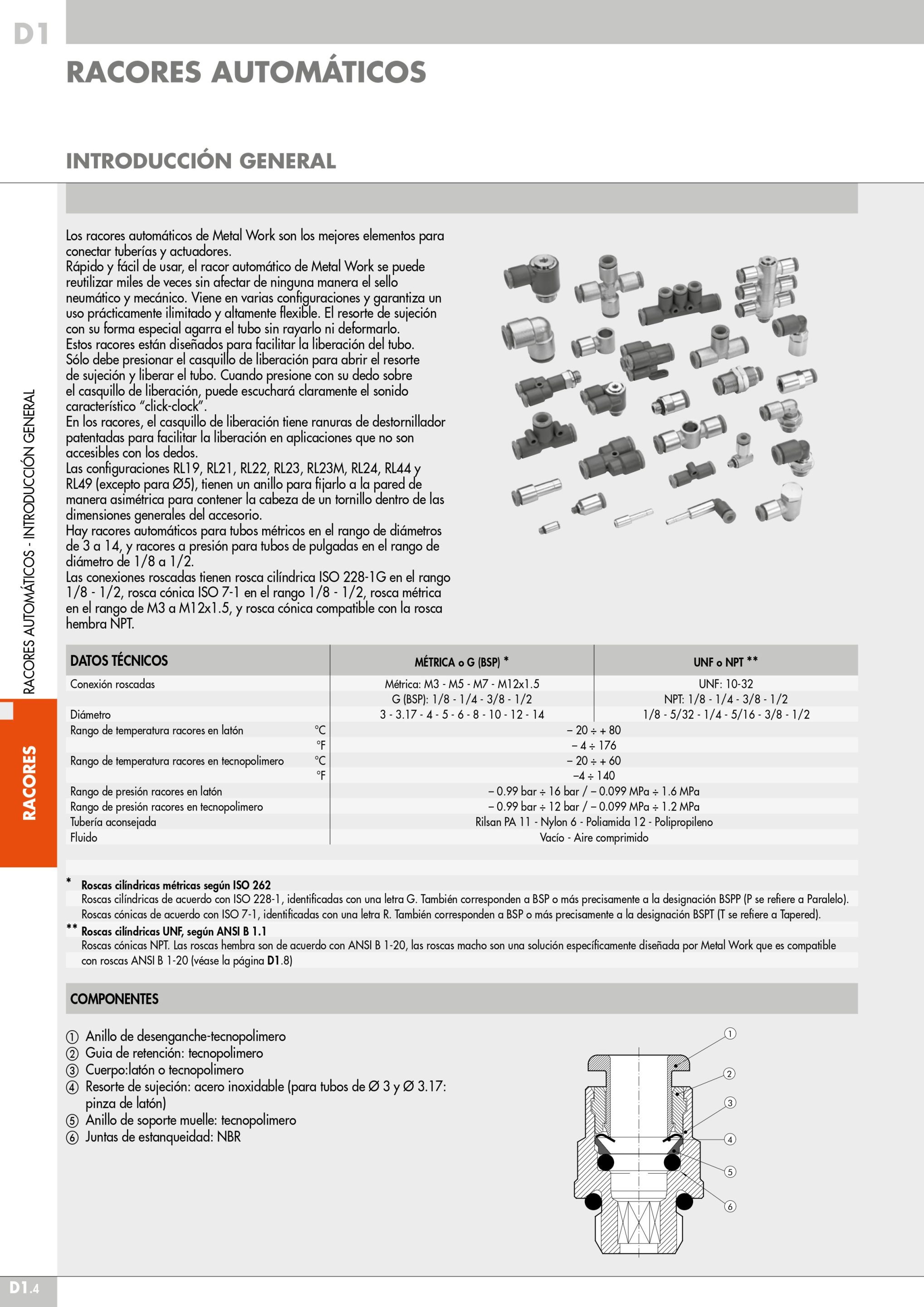 Regulador De Caudal Metal Work Montaje En Cilindro Rosca G1/4 Para Manguera 8Mm Modelo 9025009C