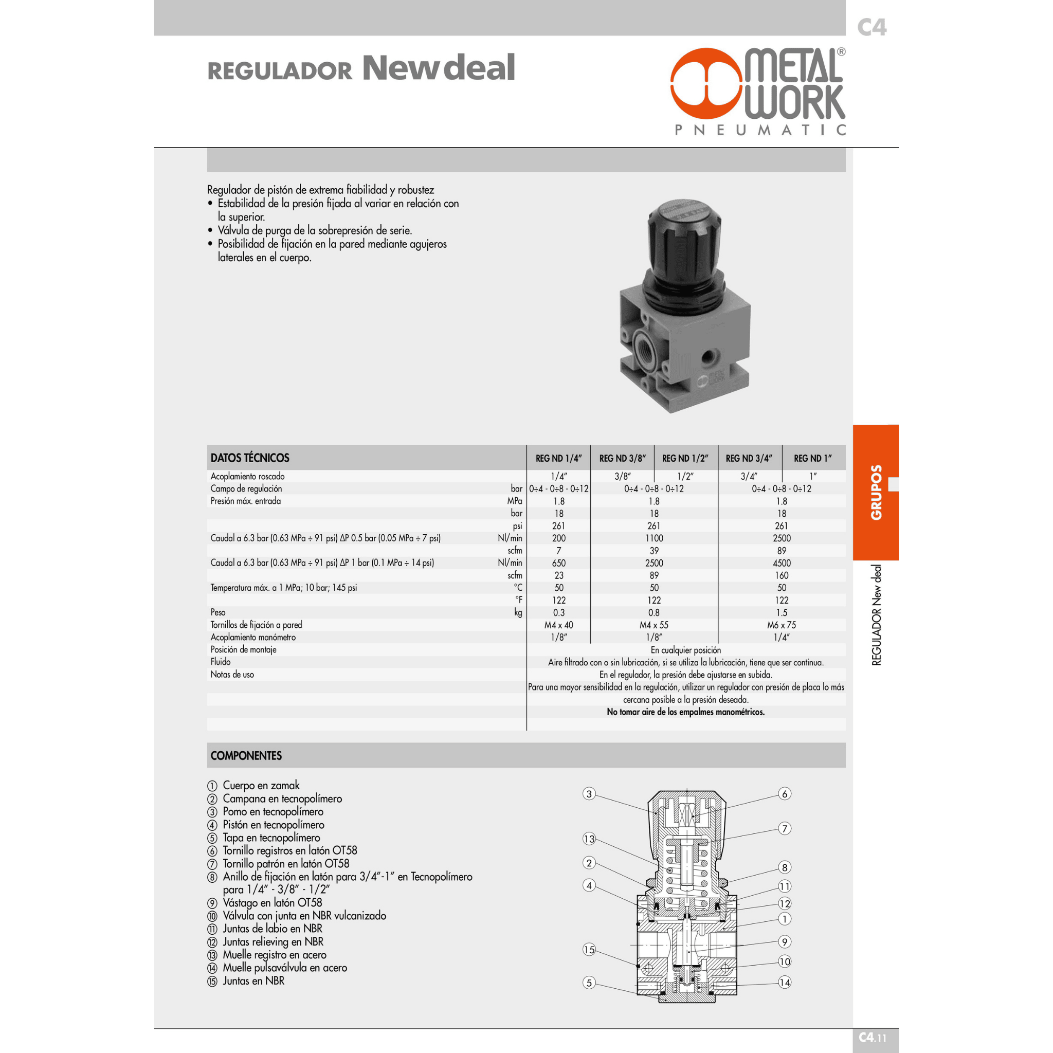 Regulador De Presion De Aire Comprimido Metal Work 0-4 Bar Npt 1/4" 1202001