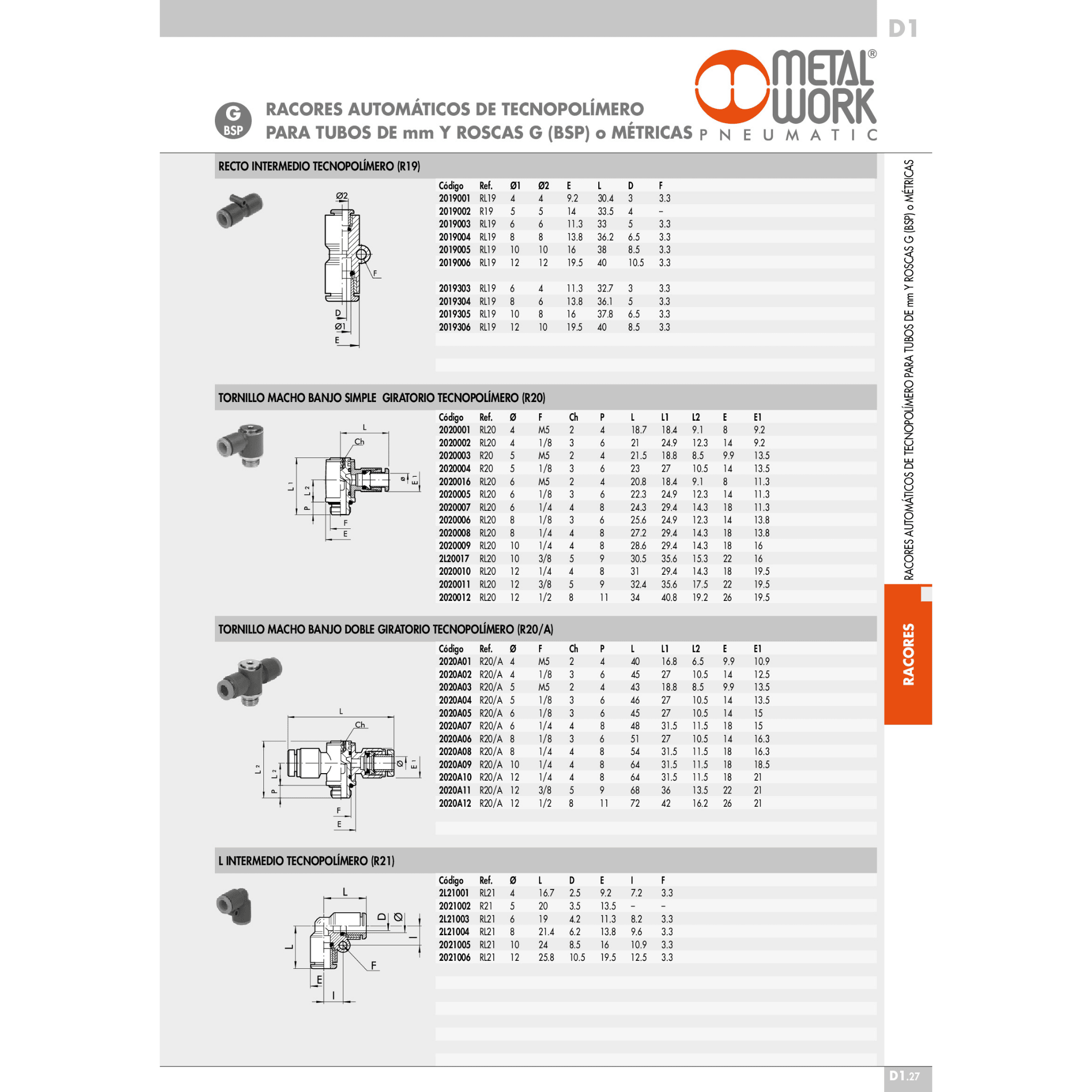 Racor Recto Metal Work Macho Rosca 1/4 Npt Para Manguera 12Mm 2001019