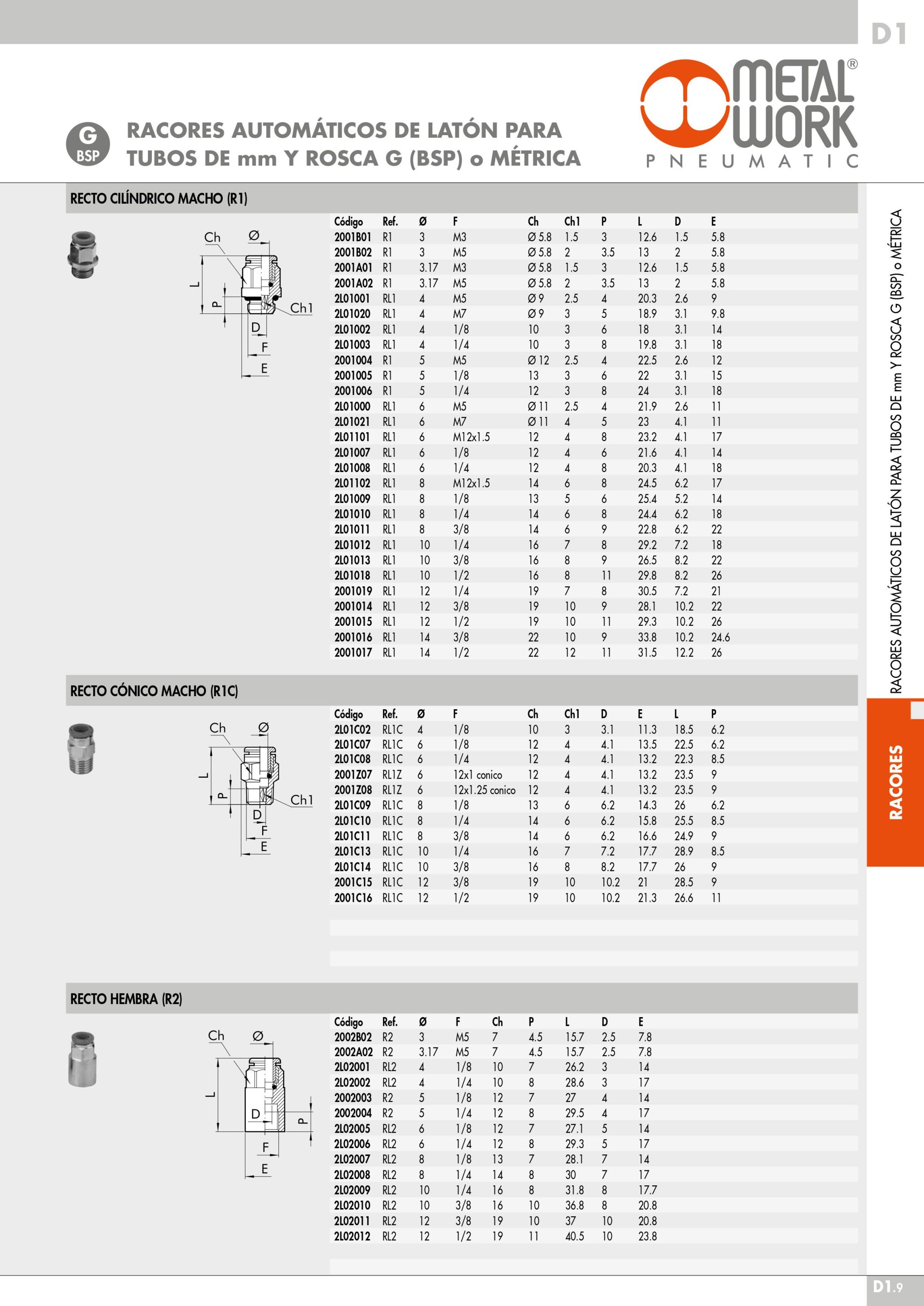 Racor Recto Metal Work De 1/8 G Para Manguera 6Mm 2L01007