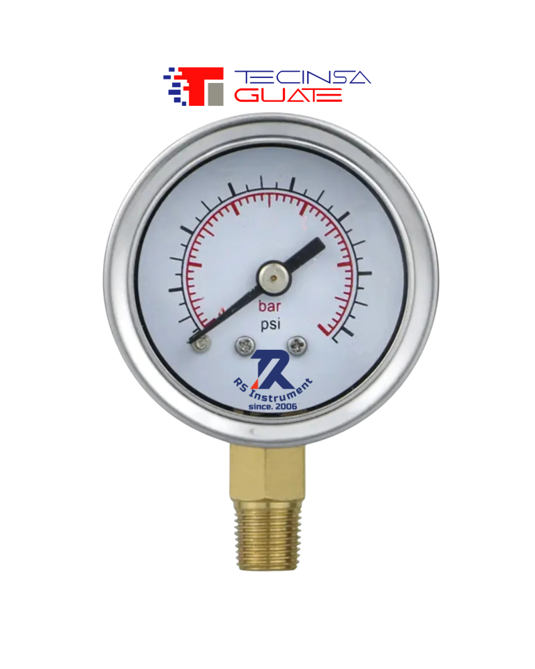 Manometro Vertical Rs Instrument Cartula 2.5" 0-100 Psi/Bar Caja Inox Rosca Bronce Npt 1/4 Modelo 115A63Gflm2N0-100Psid