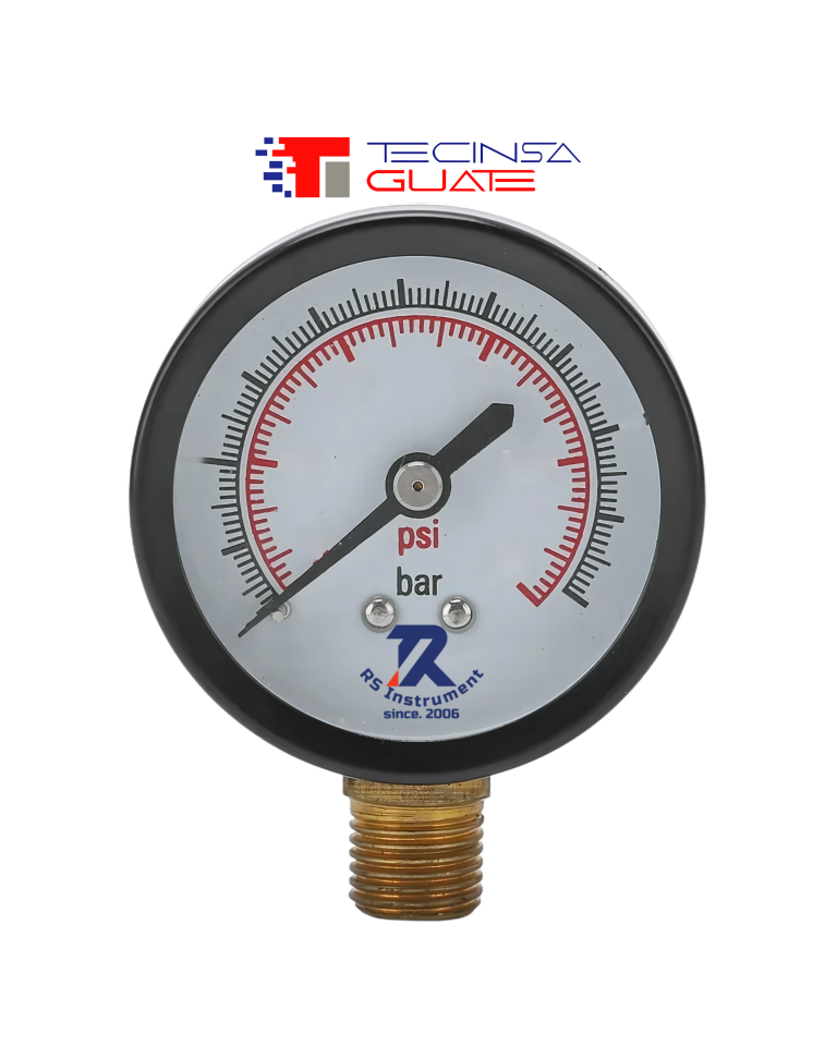 Manometro Vertical Rs Instrument Cartula 4" 0-15 Psi/Bar Caja Inox Rosca Bronce Npt 1/4