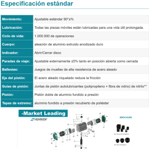 El Actuador Neumatico De Doble Efecto Hpa, Esta Prelubricado Y Probado En Un Minimo De Un Millon De Operaciones, Los Actuadores Estan Disponibles En Modelos De Doble Accion Y Retorno Por Resorte. Cumple Con Los Estandares Internacionales Iso 5211 Para Facil Montaje En Valvula Y El Indicador De Posicion Visual De Remplazo Monitoreara La Posicion Abierta Y Cerrada.