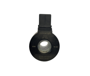 Opera A 24Vcc Con Una Potencia De 30W, Diseñada Para El Accionamiento De Válvulas En Sistemas Industriales; Está Construida Con Alambre Esmaltado Awg 26 (Clase H), Carrete De Poliamida 6 Con 30% De Fibra De Vidrio, Armadura De Acero Sae 1010/1020 Con Acabado En Zinc Bicromatizado, Núcleo De 20 Mm, Encapsulado Ip54 (Ip65 Con Conector Din 43650A), Y Dimensiones De 47×57×57 Mm, Lo Que La Hace Ideal Para Aplicaciones Exigentes De Automatización Y Control