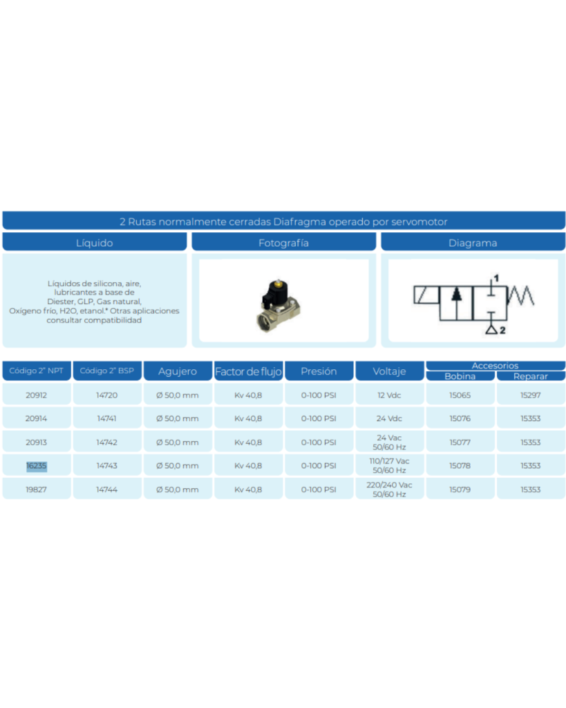 Válvula Solenoide Thermoval Laton 2/2 Vías Rosca De 2" Npt Bobina 110 Vac Presión De Operación 0-100 Psi, Usos Generales Modelo 16235