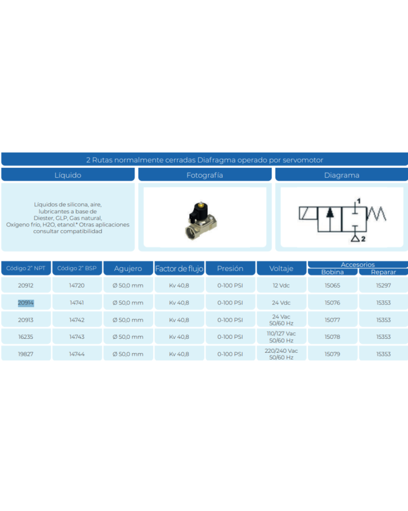 Válvula Solenoide Thermoval Laton 2/2 Vías Rosca De 2" Npt Bobina 24 Vdc Presión De Operación 0-100 Psi, Usos Generales Modelo 20914